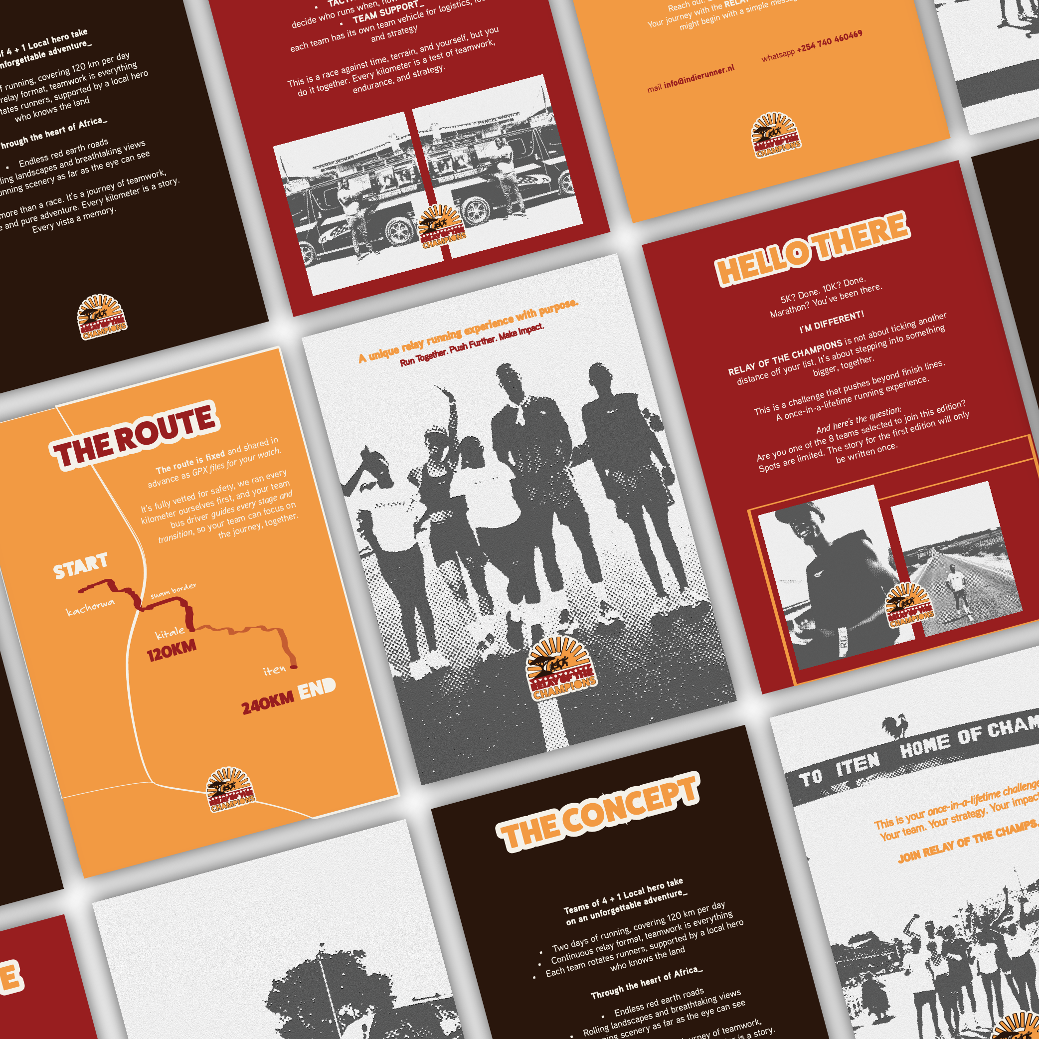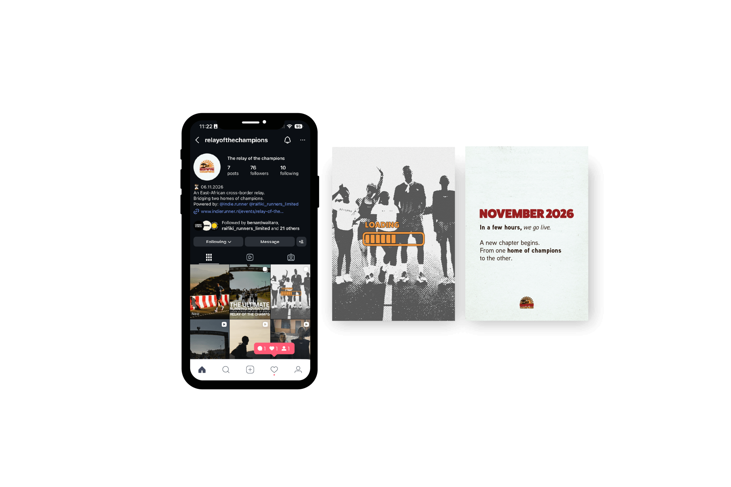 Inspired by the landscapes between Kapchorwa and Iten, the design reflects endurance, teamwork, and shared purpose. From typography to color and storytelling, every element was crafted to embody the spirit of pushing limits together, where each step carries more than distance, it carries meaning.